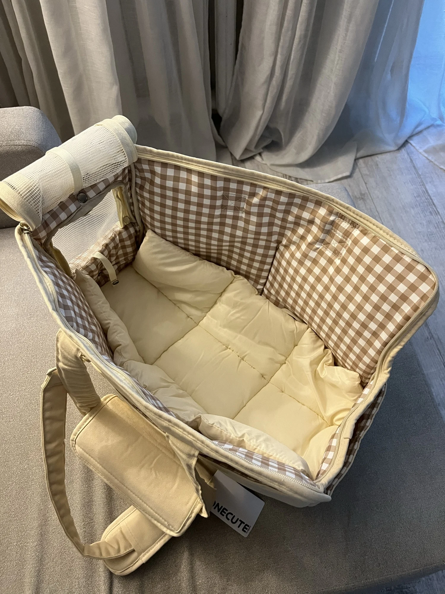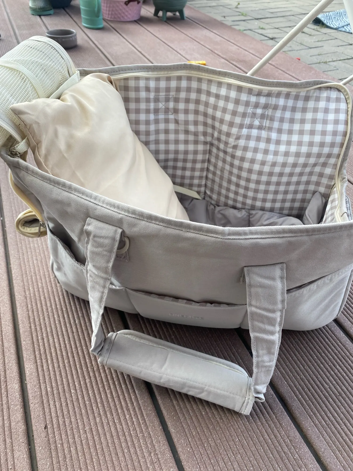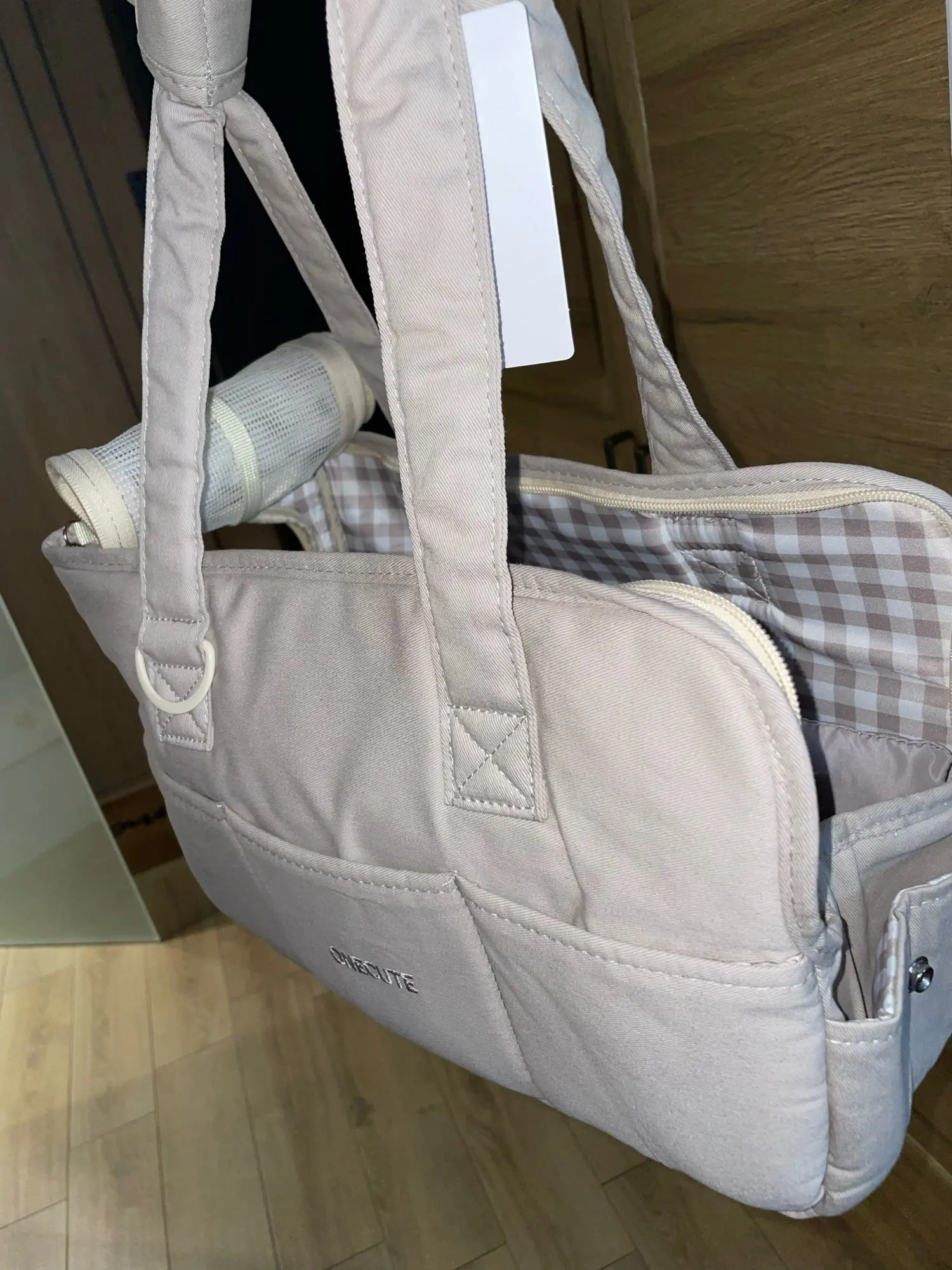 The bag is very pretty and the quality is good. It's durable but depending on the size and weight of your dog, it may fall if it's on the ground and they lean on the sides. It becomes a bit unstable with the large strap, and the weight of the little dog makes it lean more to one side than the other when it's on the shoulder. I have a Chihuahua weighing less than 1kg. But overall, I found it quite good.